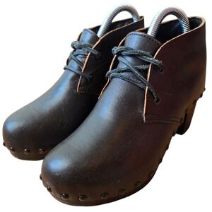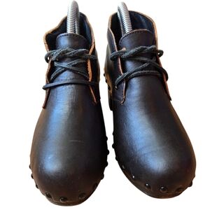 Unbranded Made In France Wooden Ankle Leather Boho Fall Winter Boots Black Sz 6.