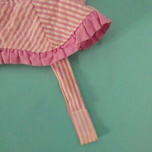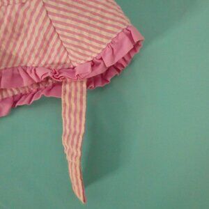 Unbranded | OS one size | Pink Striped Sun Hat | Ruffle Brim | Velcro Chin Strap