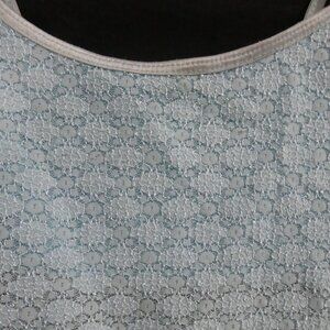 This rare elegant top features a delicate light blue lace pattern, perfect for adding a touch of sophistication to any ensemble
