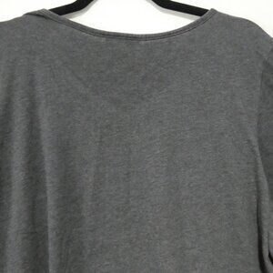 This grey V-neck t-shirt features a subtle, intricate front pattern that adds a touch of elegance to casual wear