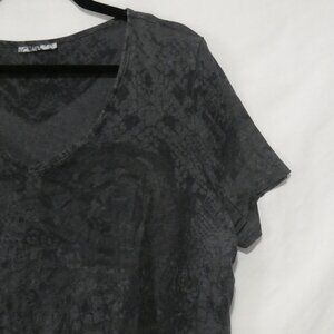 Unbranded | P2P 22 inches measured | Elegant Black V-Neck Patterned T-Shirt