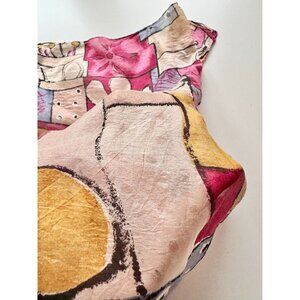 Unbranded Pink Purple Modernist Abstract Silk Chiffon 34" x 31" Square Scarf