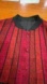 Striking unbranded red-and-black patchwork jacket featuring fully lined interior, two front pockets, and fabric-covered buttons. Sleeves are made from a soft sweatshirt material for comfort and flexibility.