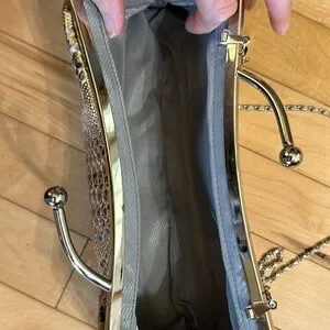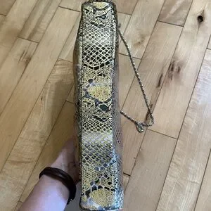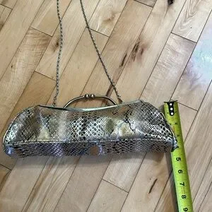 Cute snakeskin pattern handbag. Unbranded. The clasp can be a handle or use the chain shoulder strap. Fun versatile piece. Grey with gold over.