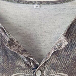 Crafted for everyday wear, this size M, grey and black top is a testament to classic style blended with a touch of designer flair. The long sleeve, V-neck t-shirt features a distinctive graphic pattern, highlighting an "Original American Customs Garage 1973" theme that adds an authentic vintage vibe to your casual ensembles. The pullover design ensures ease of wear, while the casual sleeves and collarless feature contribute to a relaxed fit that's perfect for the laid-back individual. Lightweight and versatile, this top is suitable for fall, spring, and winter, making it an essential addition to any unisex wardrobe.