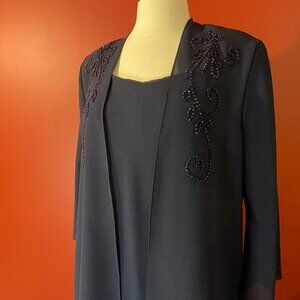 Unbranded Women's Navy Blue Formal 2-piece Dress - Size 8 - Excellent preowned condition! Outer and lining: 100% polyester. Embellished with beading all around hem and jacket front.