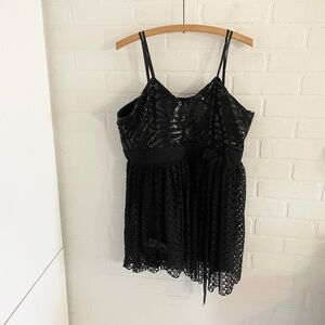 Unbranded Y2K Babydoll top Asymmetrical bows Lace Crochet Sequins Dark Fairy 3X