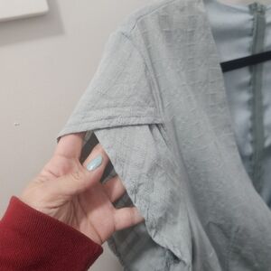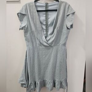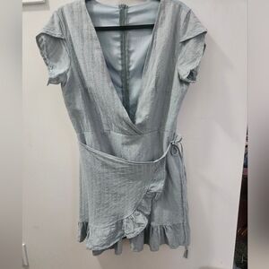 Unbranded light green faux wrap dress with tie and tulip sleeve est. Sz L