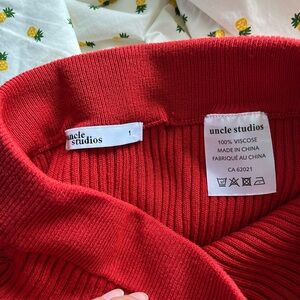 Uncle Studios Red Knit Ribbed Long Slit Midi Skirt