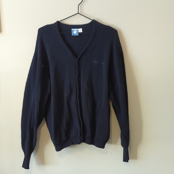 Undefeated Cardigan in a very dark navy, does fit a bit small so I'd recommend this to someone who typically wears a large.
