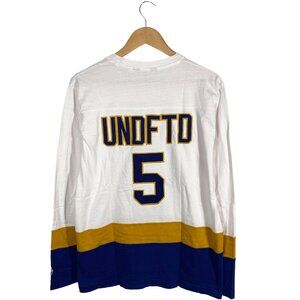 8/10 used - all embroidery is in great condition, no stains, one hole in left armpit pictured, full measurements will be provided for an accurate fit so please refer to these before purchasing!