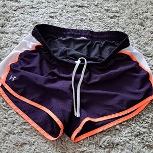 Under Armor | Purple & white/orange striped athletic womans shorts