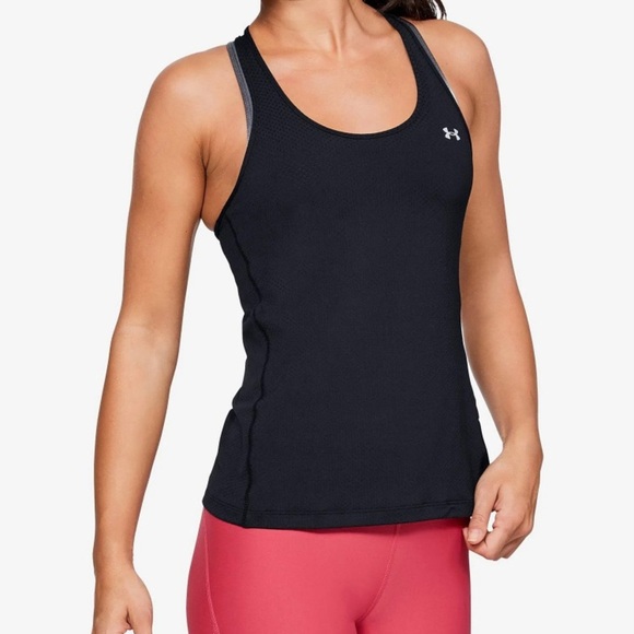 Under Armour: Super-soft pinhole mesh delivers superior breathability without sacrificing coverage. Built with recyclable fabric, free of microplastics that pollute waterways. Material wicks sweat and dries really fast. 4-way stretch material moves better in every direction. Anti-odor technology prevents the growth of odor-causing microbes. Classic racer back. 94% Polyester/6% Elastane. Fitted: Streamlined fit that's not too tight or too loose.