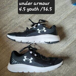 Under Armour shoes, excellent condition, 4.5 youth, 36.5 European, I'd say around a women's size 6.
