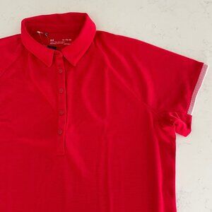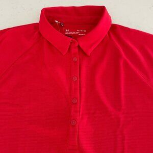 Under Armour Athletic Heat Gear Loose Fit SS Polo Shirt Red White Sz XL NWT