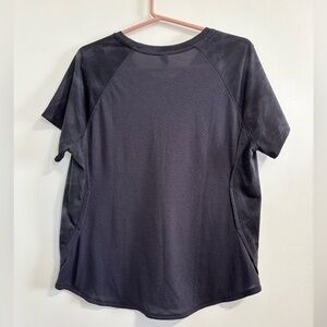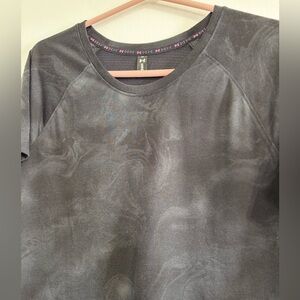 Train in style with this black athletic tee by Under Armour. Features a subtle marble pattern, breathable fabric, and comfortable fit for all types of workouts.