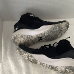 Stylish Under Armour athletic shoes in black and white. Perfect for sports and casual wear.