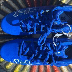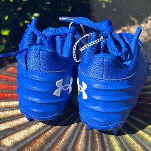 A new pair of Boy’s Size 5 Under Armour Blur Select Cleats without a box. The cleats are TPU. The color is Royal Blue. Model 3027976-400.