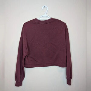 Under Armour Burgundy Purple Black Logo Cropped Crewneck Sweatshirt Top Small