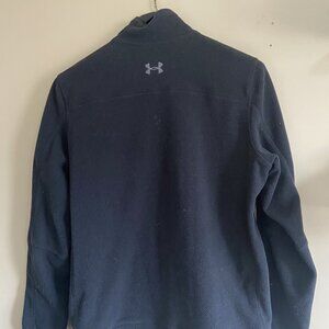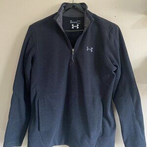 A black half-zip sweater in Under Armour's COLDGEAR line, embroidered logos on front and back.