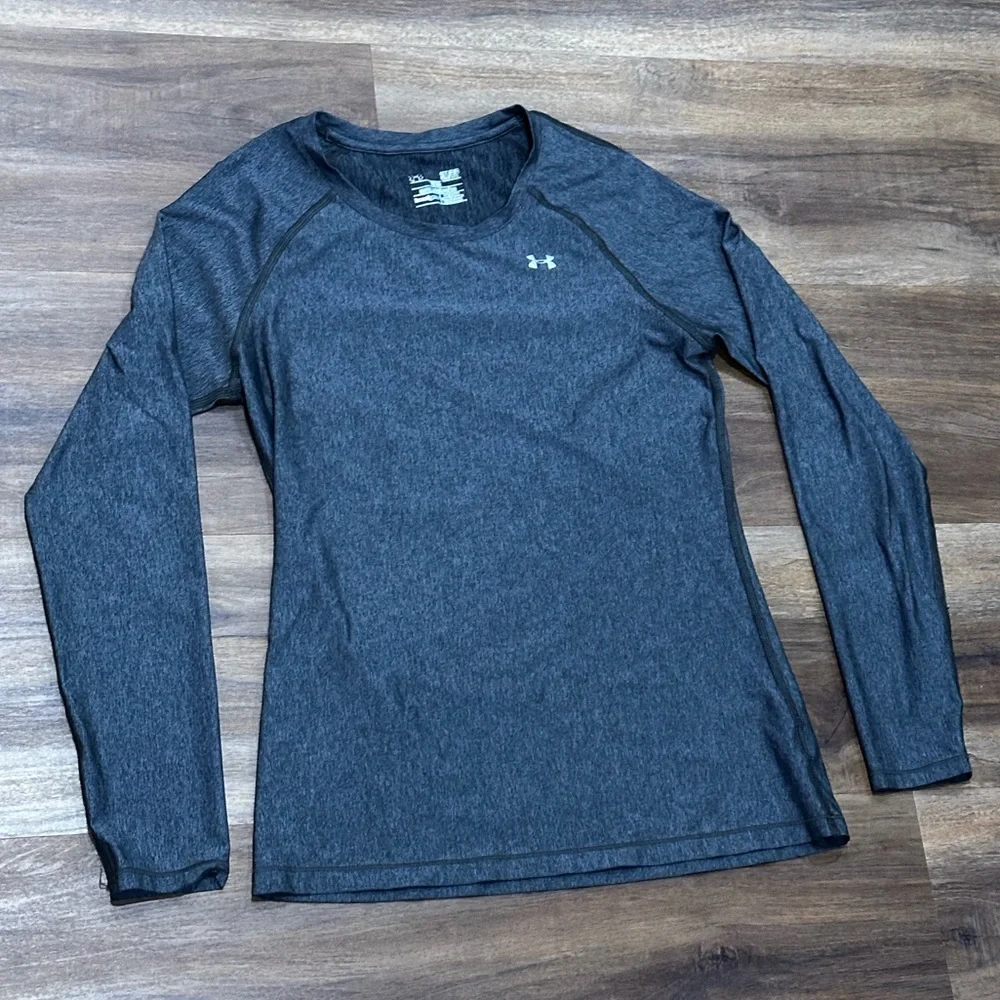 Charcoal heather long sleeve by Under Armour. Features a fitted design with HeatGear technology.
