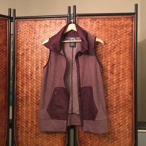 Very good preowned condition, maroon and white dithered fleece activewear vest by Under Armour Cold Gear. The string in the collar was taken out as it looked too much like a candy cane, but a black or white one will be included with purchase. Personally, I prefer it without the weight of the string, but it works well either way. Other than that, the vest looks good as new. If you would like a photo with the string included, please let me know.