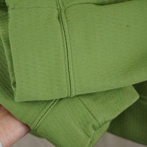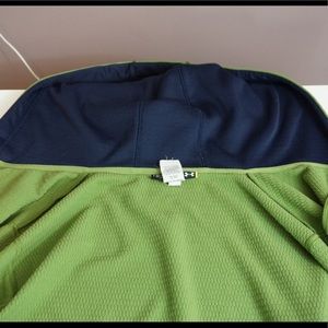 Men’s full zip hoodie. Outside is green and the Inside of the hood is blue. Size L.