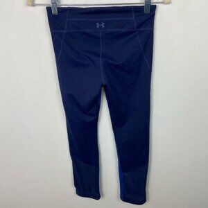 Under Armour Colorblock Blue Crop Leggings Size XS Activewear Pants Yoga Stretch