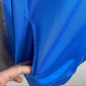 Under Armour Soft Colour Block Hoodie in Blue and Grey and Women's Size Medium. Cold gear. Loose fit. Has stretch. Long sleeve with thumb holes. Hooded. Very good pre-loved condition. No visible flaws.