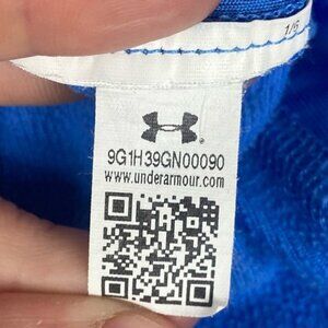 Under Armour Soft Colour Block Hoodie in Blue and Grey and Women's Size Medium. Cold gear. Loose fit. Has stretch. Long sleeve with thumb holes. Hooded. Very good pre-loved condition. No visible flaws.