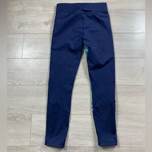 Hidden waist pocket, mesh paneling at back of calves, crop length.