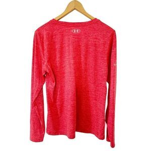 Under Armour, coral, coral orange, bright orange, vibrant tone, athletic wear, long sleeve, crew neck, fitted shirt, performance tee, stretch fabric, moisture-wicking, quick-dry, breathable material, lightweight feel, workout-ready, gym essential, activewear staple, sporty and bold, training top, running shirt, base layer, layering piece, cool-weather workout gear, outdoor active, spring training, fitness-first, bold color lover, sporty minimalist, weekend athlete, gym enthusiast, trail runner, team sport player, stylish lifter, athletic commuter, comfort-focused dresser, active lifestyle, functional fashion, modern performance wear, sleek and energetic.