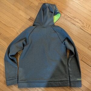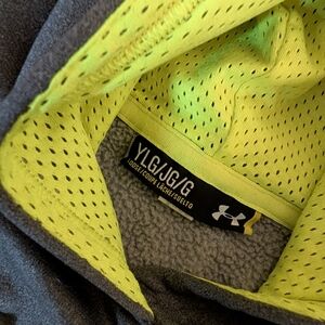 This Under Armour kids hoodie features a stylish gray design with a vibrant green logo. Perfect for active days, it offers comfort and style.