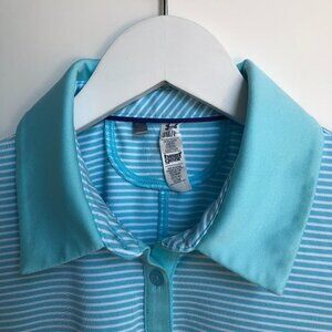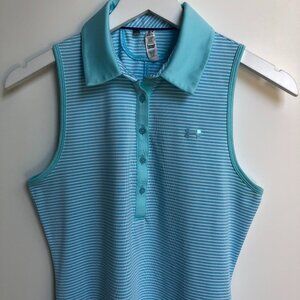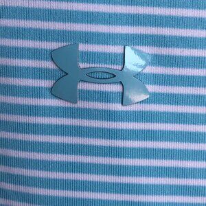 Under Armour Heat Gear Fitted Stripped Sleeveless Golf Top in Turquoise Blue + White (no fabric tag)