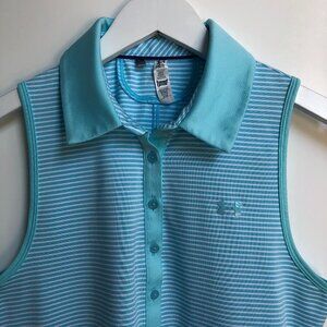 Under Armour Heat Gear Fitted Stripped Sleeveless Golf Top in Turquoise Blue + White (no fabric tag)