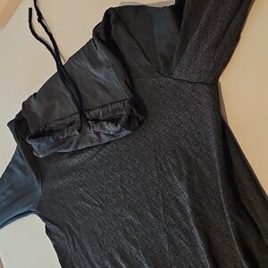 Stylish black pullover jacket. Comfortable and versatile. Perfect for casual wear or athletic activities.
