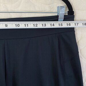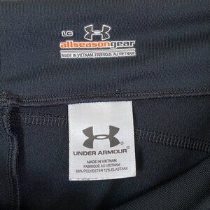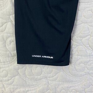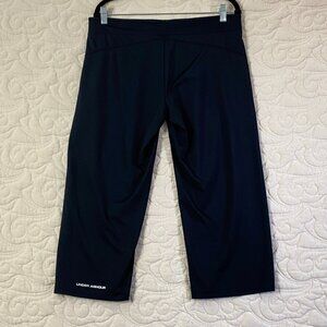 Under Armour Loose Fit Workout Capris. Women's tag size Large (actual measurements in photos). Polyester / elastane blend. Lots of all over stretch. Wide band waist. Wide leg.