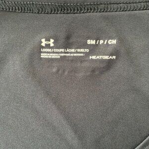 This Under Armour Tank Top for men in size small features a black and blue color combination with a relaxed fit. Made from a blended fabric, it is lightweight and breathable, suitable for various activities like tennis, volleyball, and running. The pullover style with a scoop neckline and double-sided graphic print makes it a versatile piece for casual wear or sports. With features like easy care and being machine washable, this tank top is a comfortable and practical choice for all seasons.