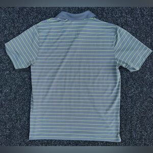 Under Armour polo, men’s golf shirt, size XL loose fit, grey striped polo, fluorescent green stripes, HeatGear shirt, moisture-wicking polo, performance golf shirt, athletic casual wear, UA polo shirt, breathable polo top