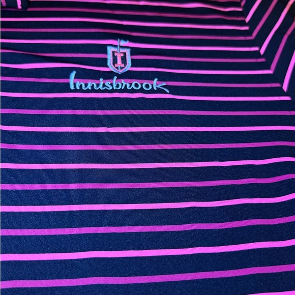 Stylish Under Armour polo with bold black and pink stripes. Perfect for any occasion.
