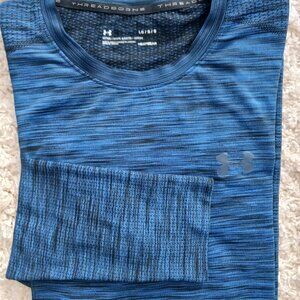 Under Armour Mens Pullover Long Sleeve Running Shirt Fitted Blue Black Size Lg