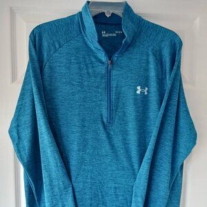 Under Armour Mens Tech 1/4 Zip Long Sleeve Running Shirt Loose Green Blue Sz LG