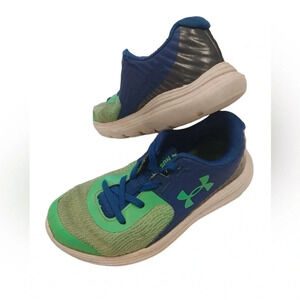 Under Armour No Tie Sneakers Runners Neon Green Blue Size 11K