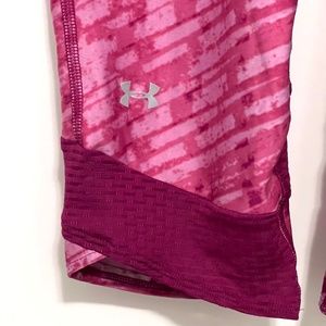 Under Armour Pink Capris in excellent condition with no signs of wear. Perfect for running, working out or playing sports. Material features heatgear technology for cooler days or evenings. Size is women’s medium. Measure 27 inches long.
