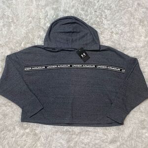 Under Armour Rival Terry Crop Loose Fit Hoodie Womens Size Large Grey Athletic