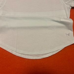 Under Armour Streaker lime green pointelle fitted t-shirt new with tags. Feminine and delicate sports style for doing cardio exercises with ease. Light and fluid jersey, micro-perforated all over and pointelle details in the back for greater breathability, rounded edging. The official colour is lime green, but I see it more like a very light pastel. Marked size US M. All measurements are approximate and taken with the garment laying flat: Armpit to armpit 17.5" Total length 23" This item comes from a smoke free, pets friendly home. Recycled bags/box used when possible. Please, let me know if you'd like any additional pictures and/or measurements or other info. Thanks for looking!