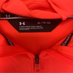 This vibrant red Under Armour jacket is designed for both style and performance. Its athletic fit and lightweight material make it perfect for active wear, while the iconic logo adds a touch of brand distinction.
