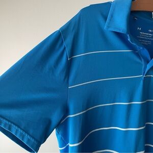 Under Armour The Playoff Polo Golf Blue White Striped Mens Size Large