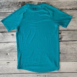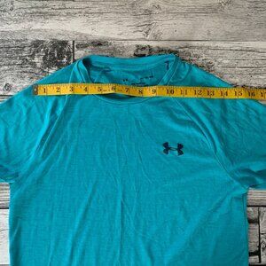 Elevate your workout wardrobe with the Under Armour Men's The Tech T-Shirt. Designed for the active man, this blue XS tee is tailored for a regular fit and offers a comfortable crew neckline. Its short, casual sleeves and blended fabric composition ensure a lightweight feel that's perfect for a wide range of activities, from running and jogging to golf and soccer. The Tech T-Shirt is versatile enough to transition from intense gym sessions to casual outings, making it a staple for any fitness enthusiast's collection. It features a mild compression level for support during high-intensity activities and is machine washable for easy care. Whether you're hitting the beach or the trails, this T-Shirt from Under Armour's renowned product line is equipped to keep up with your active lifestyle.