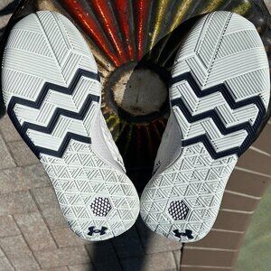 A new pair of Under Armour Unisex HOVR Havoc 5 Clone Team Basketball Shoes. They are unisex size 8 men’s and size 9.5 womens. They do not include the box. The color pattern is White and Midnight Navy. Model 3024979-103.